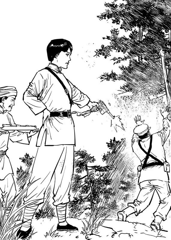 早就埋伏在悬崖脚下的游击战士们听见毛泽建的号令声,立马山边两侧冲上来,“叭!叭!叭!”开始疯狂地向敌人射击。