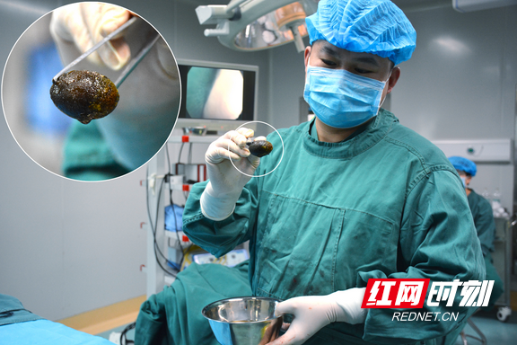 红网时刻9月27日讯(通讯员 唐青)爆炒猪肝、凤尾腰花,这些都是刘艳红(化名)平常最爱吃的菜肴,可她怎么也想不到这一饮食习惯竟然差点害她丢了胆。四年前,刘艳红因右上腹疼痛查出患有胆囊结石,但当地医院却只能切除胆囊。为了不留切胆后遗症,刘艳红最终在长沙京石结石病医院成功保胆且取出一枚如铁蛋般的胆囊结石。