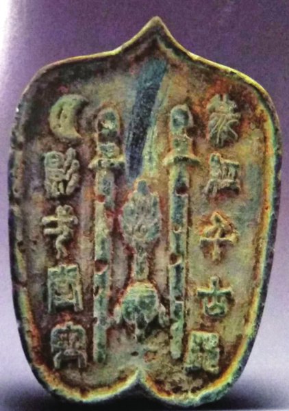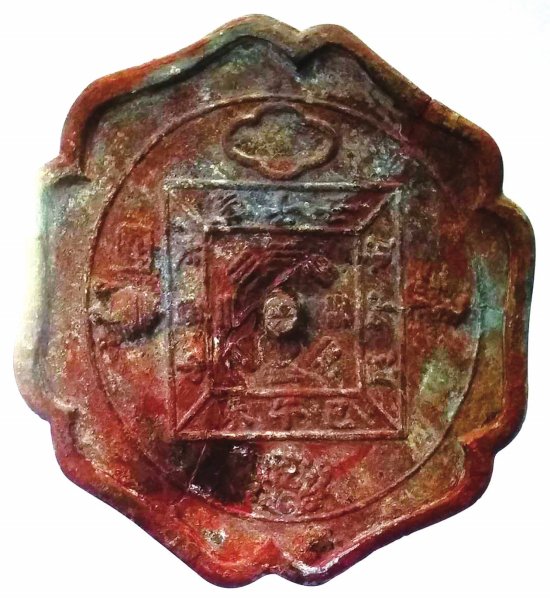 △盾形双剑纹铜镜。 珍藏于长沙博物馆的宋代铜镜。供图 / 陈先枢