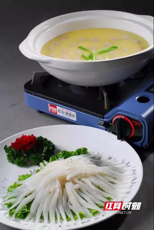 营地餐厅招牌菜:生烫银鱼锅。