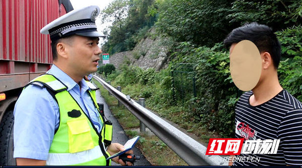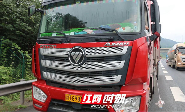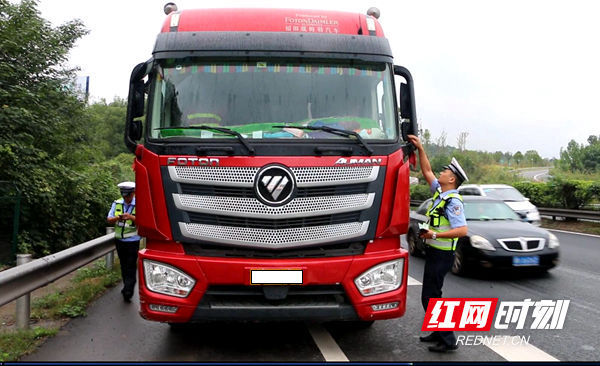 湖南高警局湘潭支队湘潭大队民警胡琪说,民警发现情况后,想通过这台货车的车牌进行联系,但发现车牌被砂石给污损了,看不到这牌,于是通知路面民警赶到现场,对他进行查处。