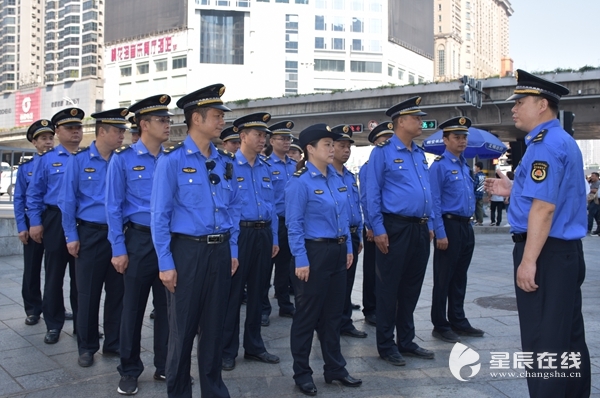星辰全媒体记者在现场看到,环卫工人接到电话后迅速到场清洗地面,交警正查处占道停车,守点的城管人员正劝阻流动商贩,从黄兴中路到解放西路再到坡子街、步行街,坡子街中队执法人员一天不间断巡查十几趟,只为确保良好的市容环境和市容秩序。