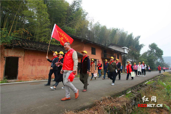 金田村与集里桥社区开展党建共建,资源共享,加快乡村振兴步伐。图为携手开展“十九大精神宣讲轻骑兵”活动。