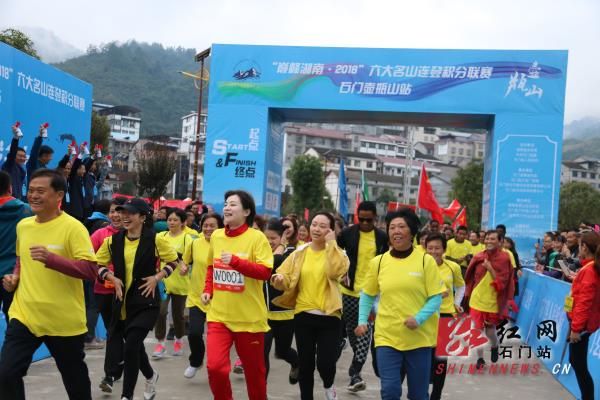 红网时刻10月15日讯 10月14日,2018第十八届湖南石门柑橘节系列活动之“巅峰湖南·2018”六大名山连登积分联赛活动在壶瓶山镇鸣枪开跑,来自全国各地的800多名登山爱好者齐聚一堂,共享这场全民健身的体育旅游盛事。蹦床世界冠军罗丹出席本次活动,并为全体运动员领跑。