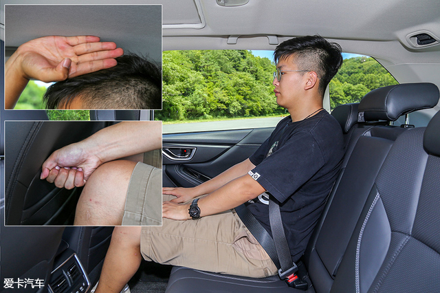 保持前排座椅位置不变,相同体验者来到后排,此时的头部空间为四指,腿部空间为一拳,整体后排空间可以满足日常家用。