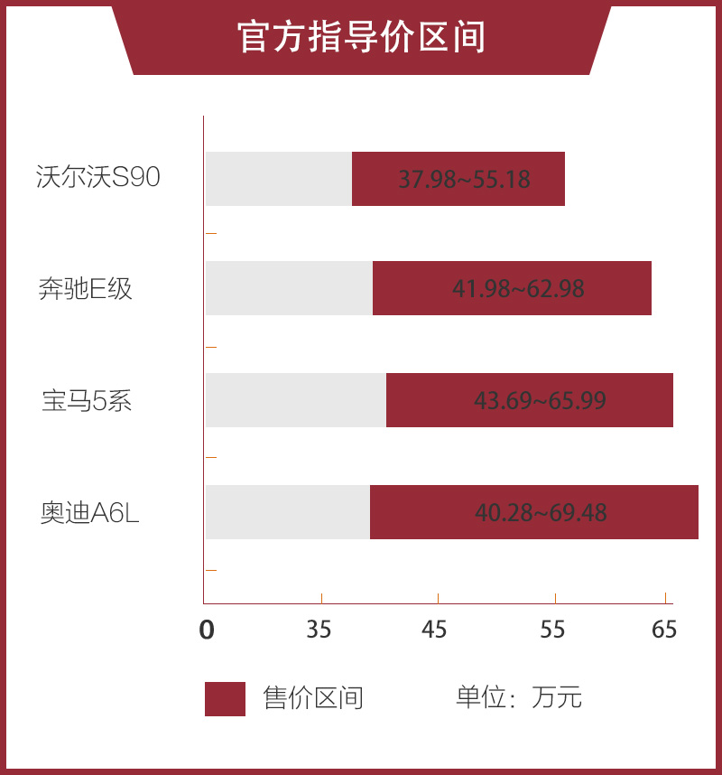 虽然对于豪华商务座驾而言,消费者对售价并不是十分敏感,但性价比因素依旧是衡量车型竞争力的重要因素之一。从售价区间不难看出,沃尔沃S90相比德系豪华品牌更为亲民,较低的入门门槛可以吸引更广泛的潜在用户,同时其顶配车型售价也没有“漫天要价”。当然,除了售价本身,车型的产品力也是我们需要重点关注的因素,下文我们将分别对4款车型亮点进行分析。