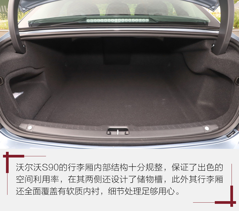 从账面数据看,沃尔沃S90的尺寸达到了同级别车型的平均水平,其中较长的整车宽度和轴距理论上能提供更宽裕的车内空间表现。