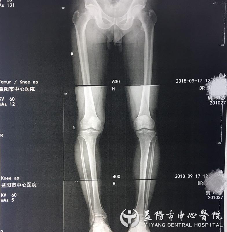 51岁的杨先生深受膝关节疼痛的折磨2年有余,期间频繁出现右膝关节疼痛不适,劳累后加重,几经治疗后,症状没得到控制,近几个月来右膝部疼痛明显加重,伴行走困难,甚至开始累及到左膝关节,曾多次辗转多家医院治疗,很多医院都建议进行关节置换,因个人经济情况及自身条件限制,杨先生暂时不考虑换关节。抱着试试看的想法,杨先生来到益阳市中心医院骨外科二病区就诊,经X片检查显示:右膝关节退行性变,膝关节内侧间隙略变窄,被诊断为“右膝关节骨性关节炎”。