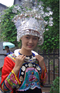 ……寨子里的“苗姨妈”叫我穿上它们苗家的盛装“嫁衣”,我迟疑了一下还是穿上了。我有很多很多的苗族盛装嫁衣,也许她们最好的嫁衣在我这里,眼下的这件嫁衣在我眼里肯定是无法和我的藏品相比的,可是我还是穿上了。两个姨妈帮我梳头穿衣忙了半天,旁边围了好几个苗家女子夸我漂亮,那会我真觉得自己是最漂亮的苗家新娘子。