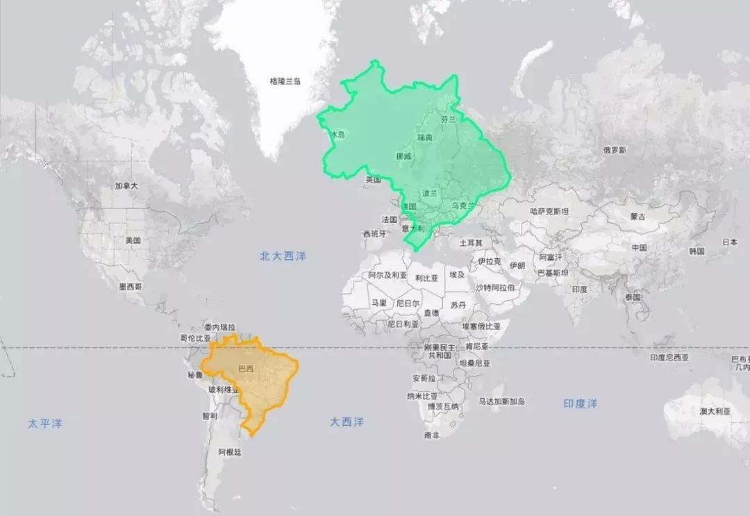 把巴西拉到欧洲,发现真的很大!
