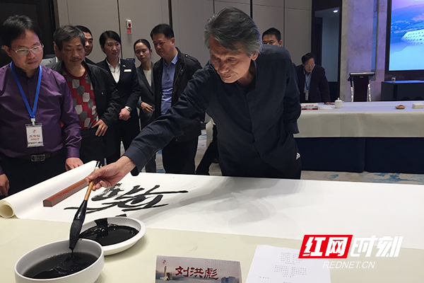 中国书协副主席刘洪彪现场书写“翰墨望城”四个大字。