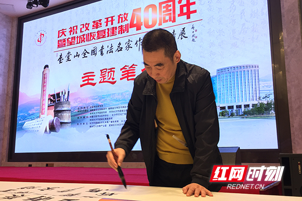 红网时刻长沙10月29日讯(记者 田甜)10月28日晚,“庆祝改革开放40周年暨望城恢复建制40周年书堂山全国书法名家作品邀请展”主体活动之——“欧阳询故里”中国书法名家书法创作交流笔会在长沙望城举行。