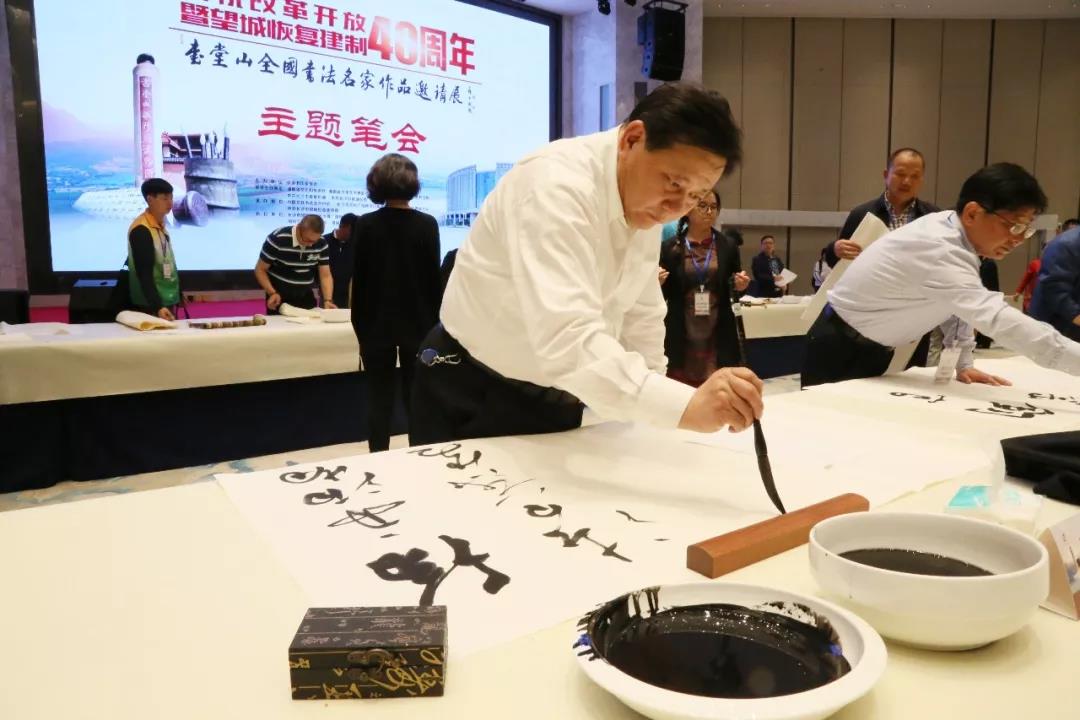 红网综合讯(通讯员 张玲)为庆祝改革开放40周年暨望城恢复建制40周年,由中国书法家协会主办的书堂山全国书法名家作品邀请展,10月29日在“楷圣”故里湖南望城雷锋大剧院开幕。中国书法家协会主席苏士澍出席并宣布展览开幕,湖南省文联主席欧阳斌,省文化和旅游厅副厅长、省书法家协会主席鄢褔初等共同启动展览。