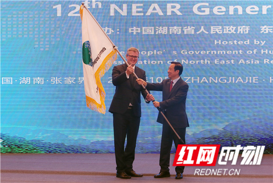 红网时刻张家界10月30日讯(记者 伍文 陆波)10月29日,东北亚地区地方政府联合会(以下简称联合会)第十二次全体会议在张家界市召开,湖南省委副书记、省长许达哲在开幕式上致辞,并出席主席会员地方政府交接仪式。
