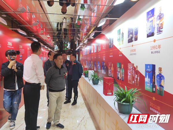 宴会厅前,一条长长的五粮液改革开放四十周年伟大历程和辉煌之路的文化长廊展现在嘉宾眼前。