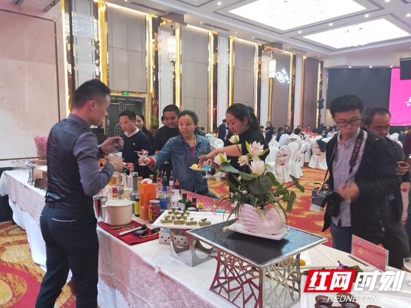 浓郁飘香、歌舞促兴、五粮液股份有限公司展示了五粮液核心产品交杯牌五粮液、五粮液1618、52度新品五粮液、低度五粮液,并展示了高端、稀缺、个性化产品新时代国运昌盛纪念酒、五粮液缘定晶生天鹅款和戒指款、改革开放四十周年纪念酒让在场来宾从观、闻、品、饮上充分体验五粮液的高端品质。芙蓉王向来宾展示了高端新品——领航新时代,将芙蓉王品牌大气、高端、细腻的品牌形象演绎得淋漓尽致。