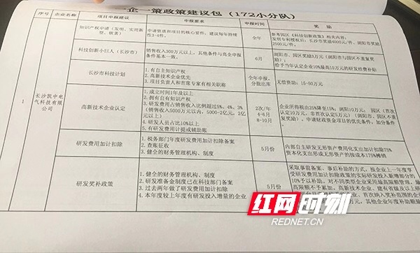 帮扶小分队为企业量身打造的个性化“政策申报建议包”。