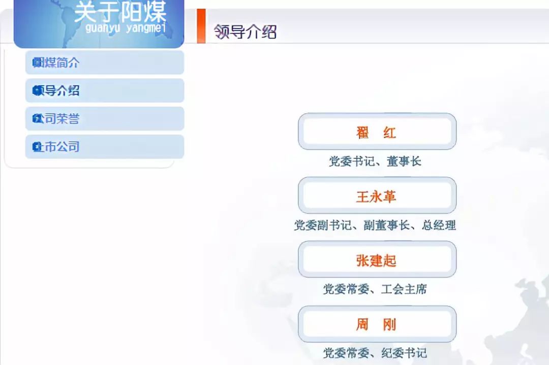 可以看出,王永革是山西煤炭行业的“老兵”了,从业经验丰富。目前,阳煤集团官网“领导简介”一栏中已经把王永革的信息更新上去,他成了名列翟红之后的“二把手”。