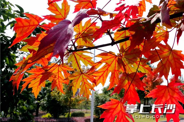 地处开福区捞刀河畔的长沙园林生态园,近年引种的北美红栎已经成林,该树树叶一片片形如加拿大国旗上的红叶图案,鲜红的树叶与满园的墨绿底色形成鲜明对比,令人赏心悦目。
