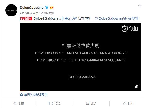 相关链接:国际奢侈品牌D&G辱华遭中国明星抵制 道歉称账号被盗