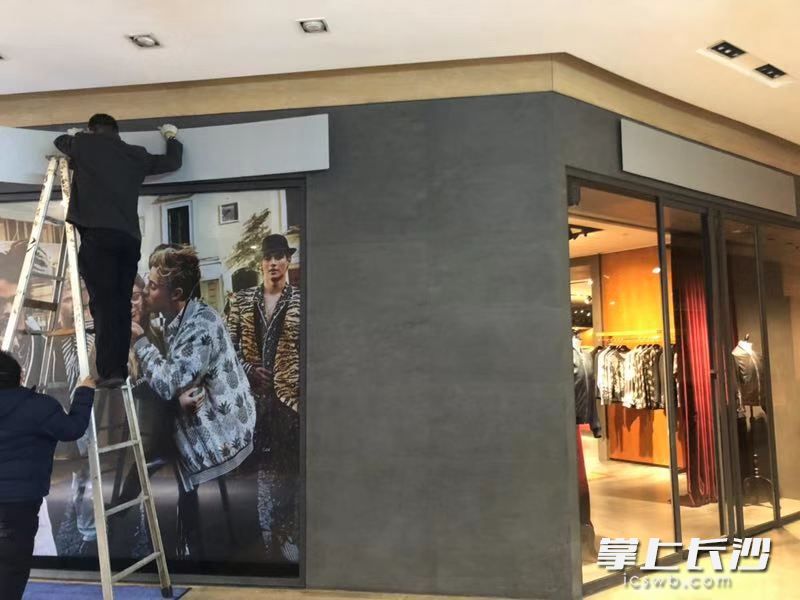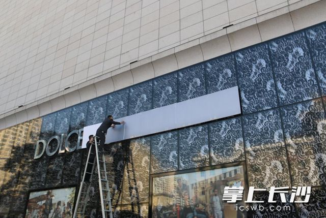 今日11时许,记者在友谊商店看到,商场A座面向韶山路的外墙上,原本Dolce & Gabbana的品牌徽标,已经被灰色挡板遮挡住。进入商场,该品牌门头的品牌logo也已被遮挡。而D&G品牌店内不仅没有任何顾客,工作人员也有意无意地站在门旁并不醒目位置。