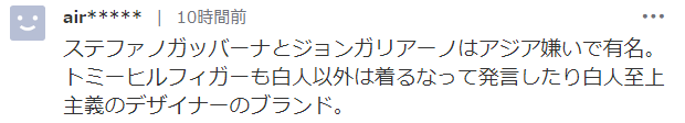 事实上,岛叔今天看到一个微信公众号的报道,就连日本媒体和网友都看不下去(可能是因为都是亚洲人、都用筷子)。日本网友的代表性言论是这样的:“歧视亚洲人不就是你的心声?那就继续为白人专用品牌努力吧!不过,我觉得并不会卖得好。”“这一对不就是以歧视亚洲人出名的吗?”