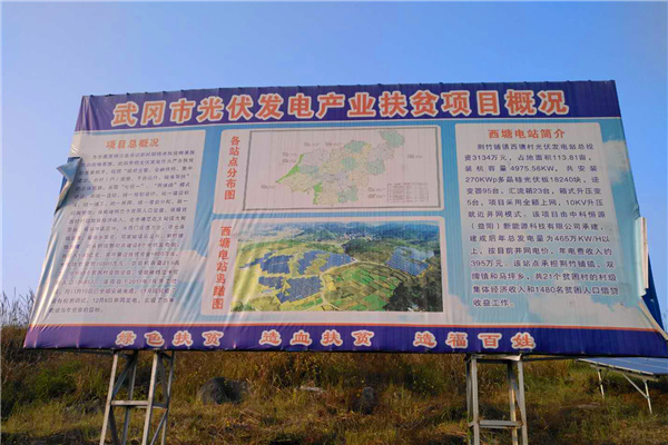 2017年,为全面贯彻落实好中央关于新时期精准扶贫精准脱贫的战略思想及湖南省发改委、湖南省财政厅等十家单位联合下发的《关于推进光伏扶贫工作的指导意见》(湘发改能源〔2017〕341号)文件精神,市委、市政府高度重视,成立光伏产业扶贫项目建设指挥部,确定在全市申报建设21.6兆瓦光伏扶贫项目。该项目建成后为稳定增加全市85个贫困村村级集体经济收入和10495名参加光伏扶贫贷款的建档立卡贫困人员的收入,促进贫困村尽快摘帽、贫困人口早日脱贫,为实现我市2018年整体脱贫建成小康武冈奠定了坚实基础。到2017年12月,8个光伏电站全部并网发电,至今运行良好。