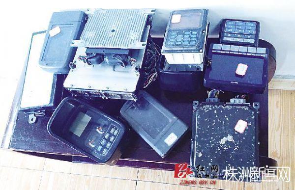 民警追缴回来的5套挖机显示屏和电路板(记者胡乐 摄)