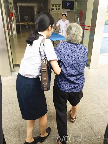 盘晓莹扶老人进医院。图片由盘晓莹同事提供
