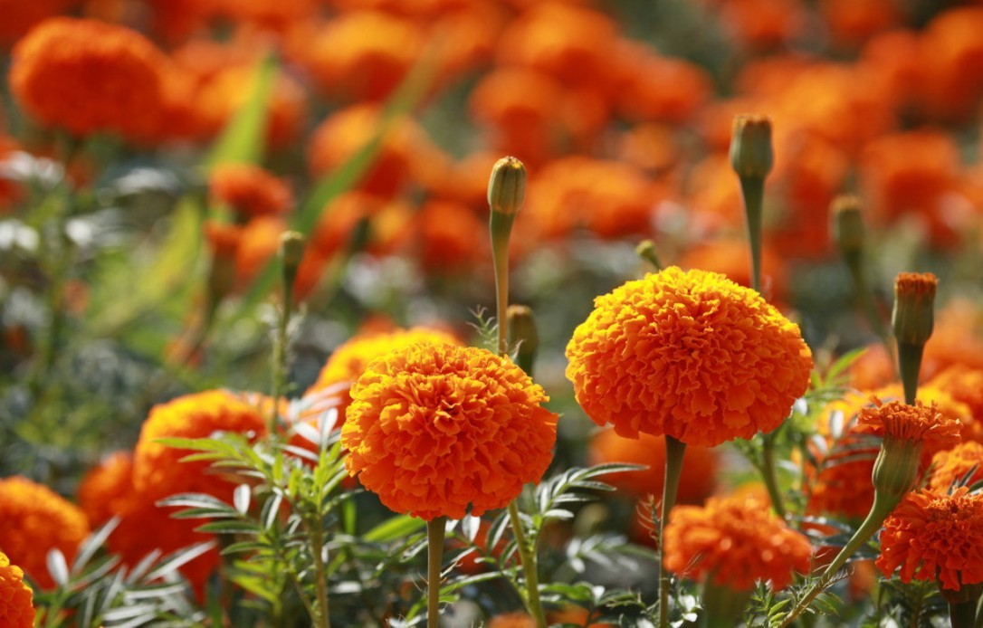 原产墨西哥,在中国各地都有人栽培用于观赏,可生长在海拔1,150米至1,480米的地区,多生在路边草甸。万寿菊常于春天播种,因其花大、花期长,故常用于花坛布景。
