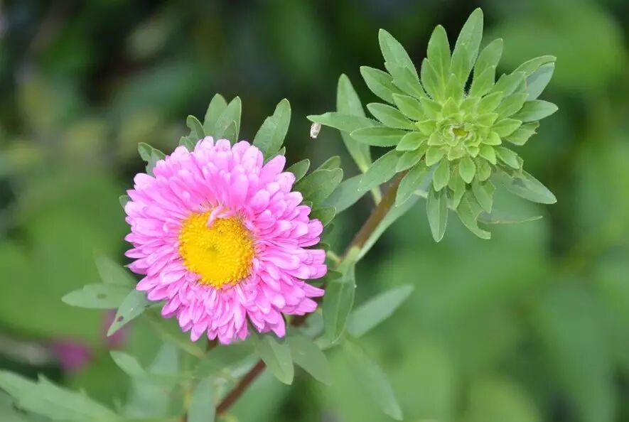翠菊为菊科、翠菊属植物。 菊科(Asteraceae)草本植物,学名为Callistephus chinensis。许多栽培品种久已为庭园观赏花卉。