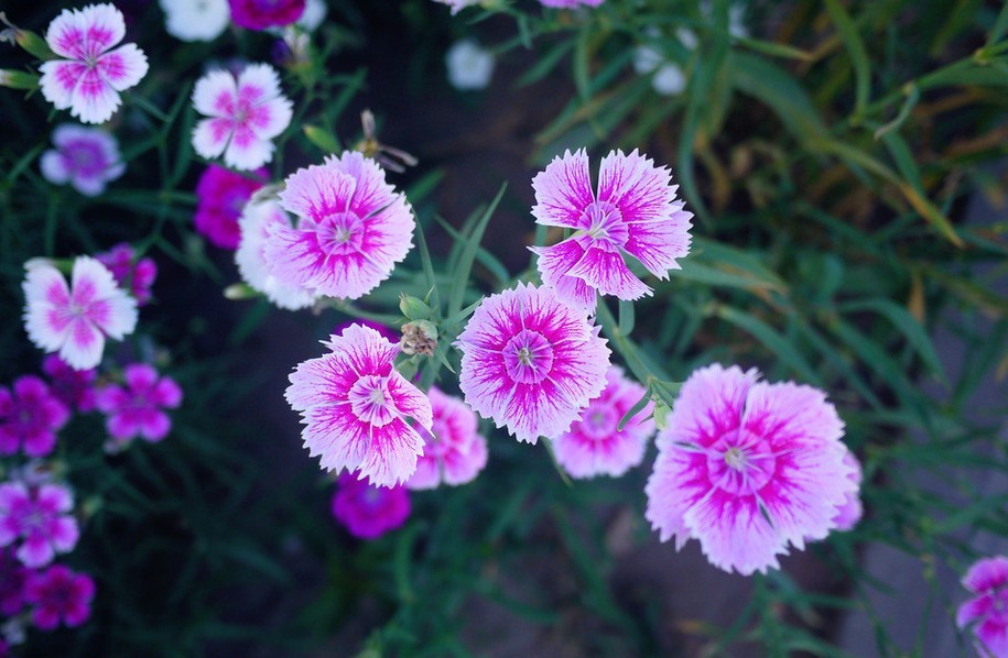 五寸石竹是多年生草本作一、二年生培植,耐寒而忌酷暑,喜排水良好的肥沃土壤。株高15-20CM,花色有红、白和白地中心红、浅粉地中心红等混 合色,盛花盖叶,真如团花锦簇。