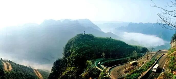 理由:这条盘山而上的公路只有6公里左右,却修筑于水平距离不足100米,垂直高度440米,坡度为70-90度的大小斜面上。这段公路的外观,像一长条折摺的带子,一道陡峭的多级阶梯,其地势之险、工程设计之巧妙居全国公路之冠,被网友称为最悲壮的矮寨公路奇观。