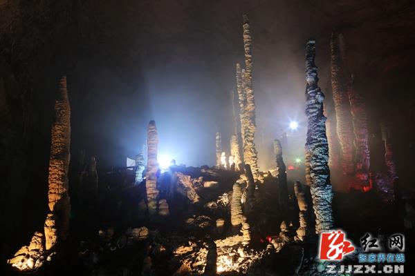 “只有小时候在《天仙配》电影里面看过!”据黄龙洞景区保卫毛成军介绍,早上7点,他是第一班进洞,没想到刚走进16000多万平方米的龙宫大厅,就被眼前的景象惊呆了,龙宫口白茫茫的一片,大片石笋被包裹,整个石笋就象浮在云层上面一样,犹为壮观,整个现象持续了近半个小时。