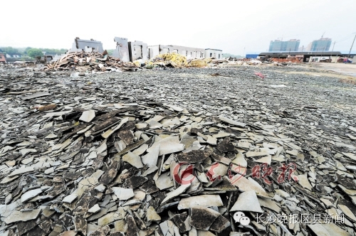 今年,天心区已拆除先锋街道中南木材交易市场违法建筑7.1万平方米。这是被拆除的木材交易市场,这里将复绿建公园。