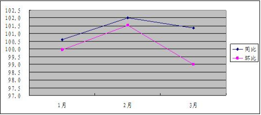表1:2015年一季度居民价格同比、环比走势图