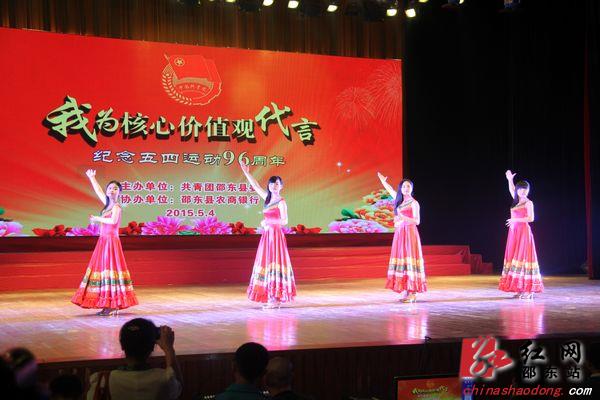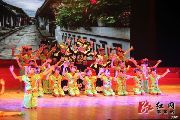 整个活动文艺节目丰富多彩,精彩纷呈,洋溢着青春的气息,邵东一中学生的爱国歌曲《旗帜颂》合唱赢得了一片热烈的掌声,邵东三中学生的音乐快板《说说社会主义核心价值观》耐人回味,两市镇二完小学生的舞蹈《泥泥狗》令人忍俊不禁、小戏《送鸭》让大家感受到了浓浓的乡土气息。舞蹈《战》、《泥泥狗》、《南京南京》,小戏《送鸭》、歌曲《奔跑》等一个个精彩节目激情飞扬,轮番上阵,台下的观众看得津津有味,不时爆发出雷鸣般的掌声。