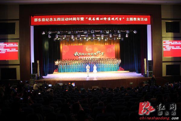 红网邵东站5月5日讯 (通讯员 张军 金娜 曾晓风 曾书雁) 为继承和发扬“五四”精神,进一步团结动员广大青年努力学习社会主义核心价值观,为实现“中国梦”贡献青春、智慧和力量,5月4日晚,邵东县纪念五四运动96周年暨“我为核心价值观代言”主题教育活动在县会议文化中心举行。邵东县领导黎仁寅、沈志定、王定松、刘细云、申桂荣、周平、袁胜良、张备清、傅丽华、彭韬、李本功、罗莉、尹安中等出席了活动,并为邵东县“十佳美德少年”、“青年创业之星”颁奖。