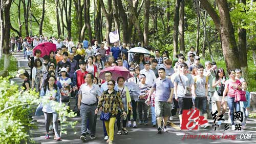 图为“五一”期间花明楼景区游人如织
