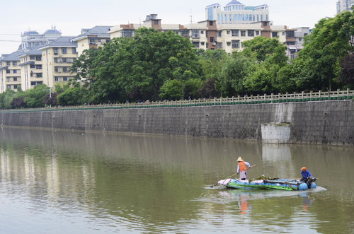 红网郴州站5月8日讯 (记者 张一多 摄)5月7日,多艘河道清理船正冒雨对郴江河漂浮藻类进行清理。近年来,我市加大郴江河保护和治理力度,努力建设水生态文明城市。相关部门采取分段蓄水、建设污水管网、整治排污企业、组建河道清理队伍等措施,改善郴江河水质。