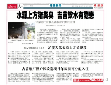 湘西头条5月10日讯 去年5月,湘西州纪委点题监督评议办就将我州城市饮用水源保护问题提上了监督工作日程,并在6月底围绕该问题举行了专题电视问政。问政节目中反映:凤凰县竿子坪乡新民村有养猪场20余家,猪粪直排河道。而该河直通万溶江——吉首市自来水三厂的取水点上方——城市饮用水源二级保护区。然而,在接近一年的时间里,如此严重的环保问题仍未得到解决。