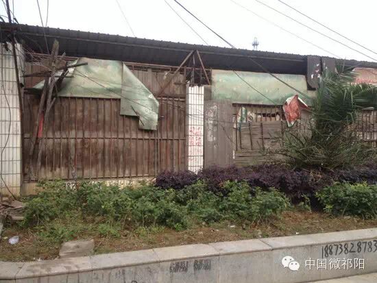 围栏上搭建的木板、乱写的牛皮癣广告