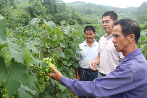 红网郴州站6月3日讯 (记者萧林生)近年来,桂阳县在新农村建设中注重结合各村实际培育和发展经济产业,发挥当地产业大户、致富能人的带动作用,引导农民走致富之路。图为5月31日,该县方元镇马巷村科技致富带头人袁光明在为前来参观学习的群众讲解葡萄种植技术。