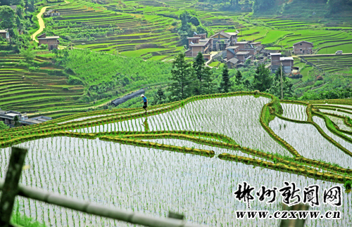 红网郴州站6月5日讯 时值6月,郴州市高海拔地区开始进入一季稻生产的关键时刻,村民们在那层层叠叠、丘丘块块的梯田间劳作,映现出独特的农业之美。