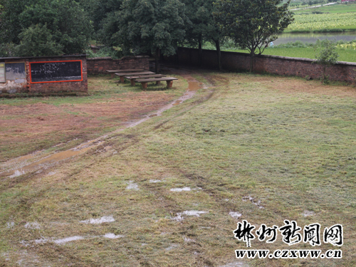 未硬化的学校操场一到下雨天,便成了泥泞地。