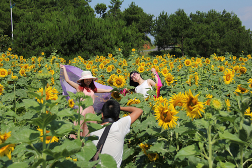 郴州日报7月13日讯 近日,来自郴州城区、桂阳及永州新田等地的游客在嘉禾县普满生态观光园金色葵园拍照留恋。盛夏时节,普满生态观光园的200多亩向日葵盛情开放,吸引周边县市大批游客前来观光。 (记者 何光红)