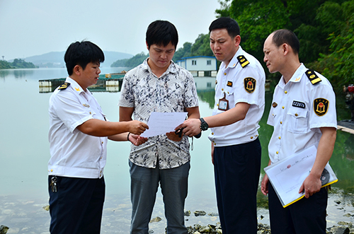 红网郴州站8月14日讯 连日来,郴州市县两级海事机构加强汛期水上安全监管,严查水上交通安全隐患,切实保障辖区水上交通和渡口渡运安全,让群众乘上“放心船”。8月13日,海事执法人员在苏仙区桥口镇翠江水域对未经批准在航道上进行渔业养殖的企业主进行调查,当场下达《海事违法行为告知书》,要求限期整改。