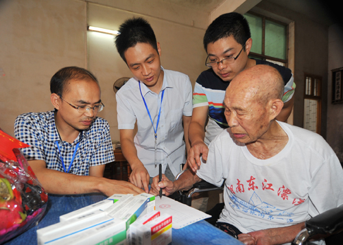 红网郴州站8月18日讯 8月13日,在嘉禾县珠泉镇丙穴社区,医保中心与定点协议药房工作人员为特殊门诊对象送去申购药品。今年,该县医保中心创新服务举措,与762人特殊门诊对象建立上门服务制度,免费开展送医、送药、体检、访视等服务,让20余名行动不便的特殊门诊患者在家得到实惠、快捷、优质的诊疗服务。