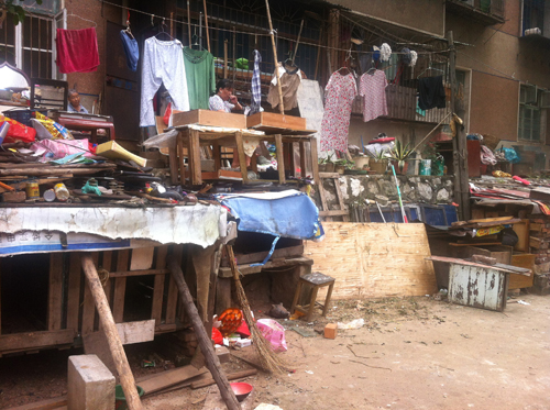 中铁五局小区乱搭成灾。(记者胡丽君摄)