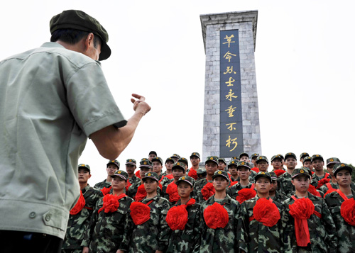 红网郴州站9月17日讯 9月11日,嘉禾县革命烈士陵园,新兵们在聆听战斗英雄肖成文讲述革命战斗经历。当日,该人武部组织50名入伍新兵,来到烈士陵园,缅怀革命先烈,重温革命历史,接受红色光荣传统教育,不断增强新兵从军报国的信心。